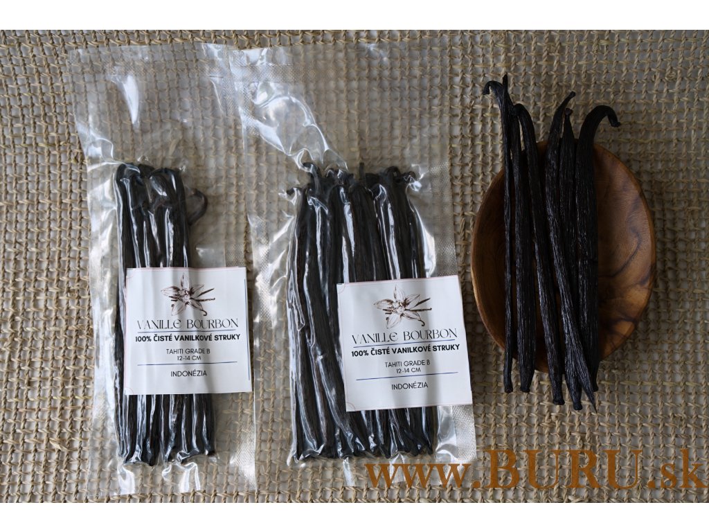- Struky vanilky Tahitensis Grade B sú kratšie, hrubšie, vrásčité a olejnaté, čo z nich robí ideálne na rýchle a efektívne využitie v gastronómii. Hoci sú tieto struky kratšie a suššie než prémiové Gourmet, ich bohatá vôňa a chuť stále poskytujú plný a komplexný zážitok, ktorý sa využíva v luxusných dezertoch, vanilkových extraktoch, sirupoch alebo aj na dochucovanie slaných pokrmov.